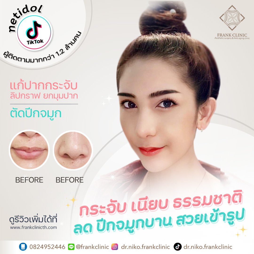 "ของกี้ ทำแก้ปากกระจับบน และตกแต่งความหนาปากล่างเพิ่ม พร้อมกับตัดปีกจมูกค่ะ"