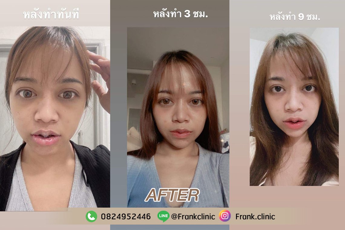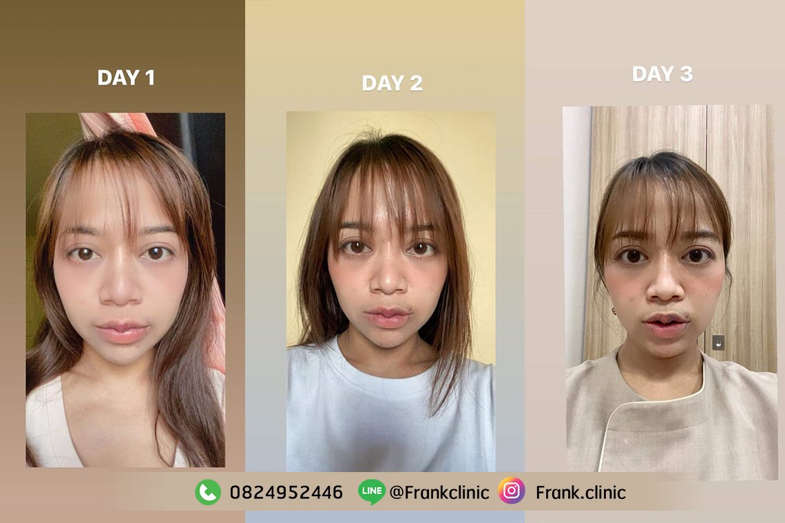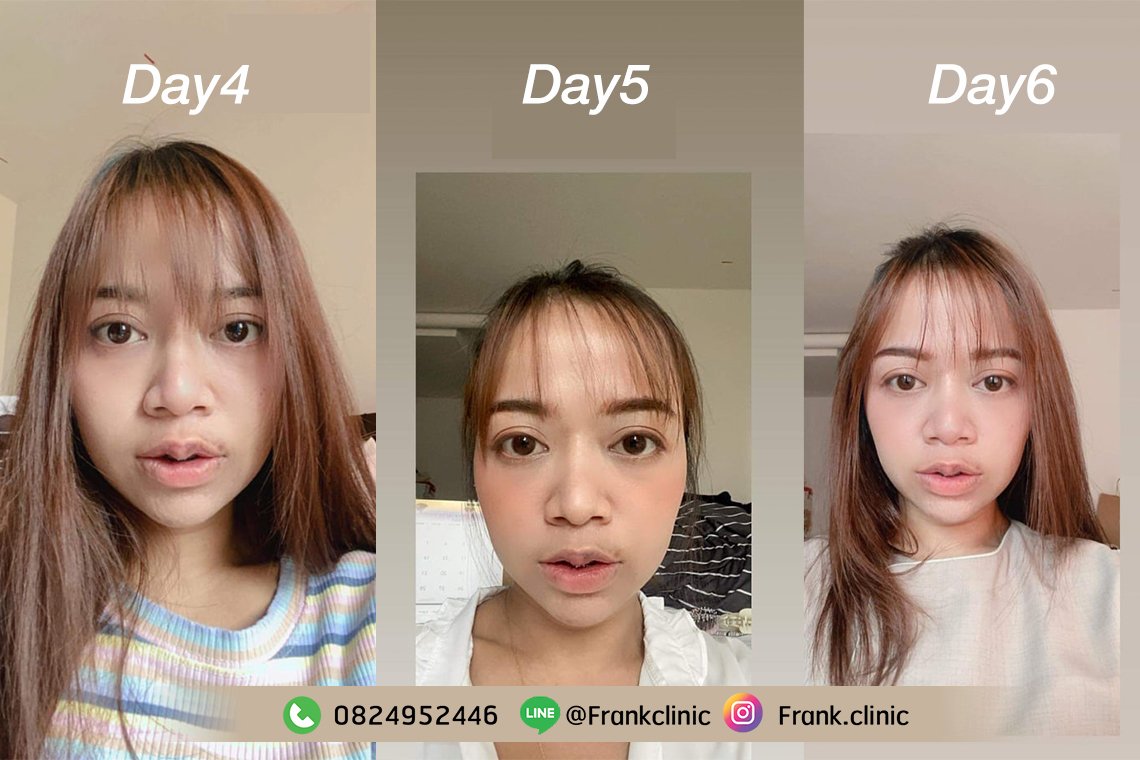 "ของเราคือบวมน้อยมาก จะมีบวมมากๆ ประมาณ วันที่ 3-4หลังทำค่ะ ที่เรามีอาการเขียวช้ำเล็กน้อย ซึ่งก็ตรงกับที่คุณหมอแจ้งก่อนทำ ว่าอาการบวมส่วนใหญ่จะมากที่สุดในวันที่ 3-4 หลังทำไป ตอนแรกเราก็จะกังวลนิดหน่อย แต่คุณหมอก็ให้ส่งรูปแผลมาอัพเดททุกวัน และแนะนำการทำความสะอาดแผลให้สะอาดตลอด ดูแลใกล้ชิดมาก"