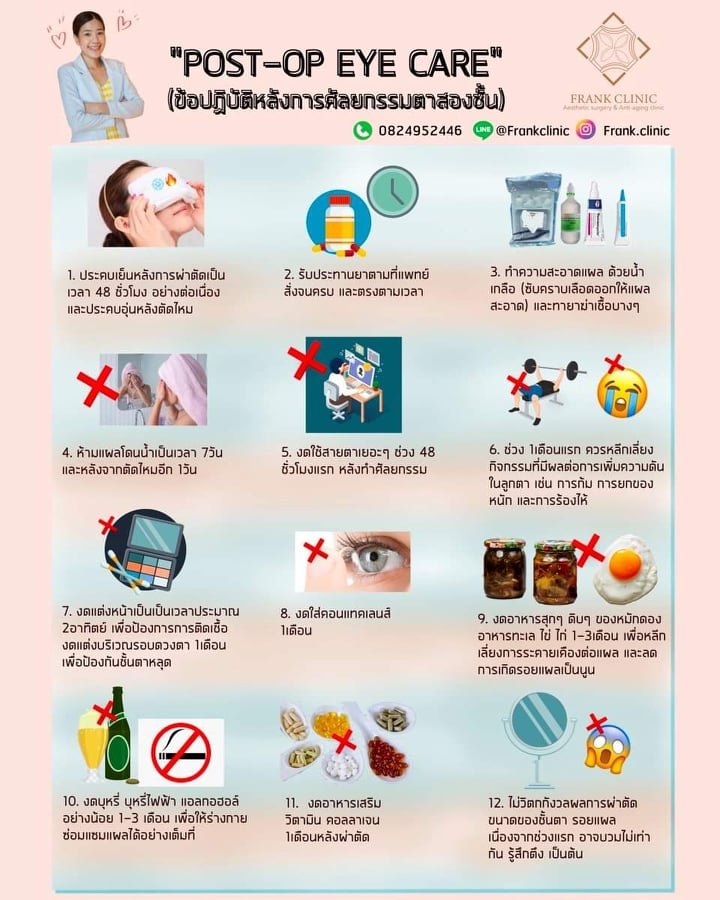 12. ไม่วิตกกังวลผลการผ่าตัด ขนาดชั้นตา เนื่องจากช่วงแรก อาจบวมไม่เท่ากัน หรือรู้สึกตึง เป็นต้น